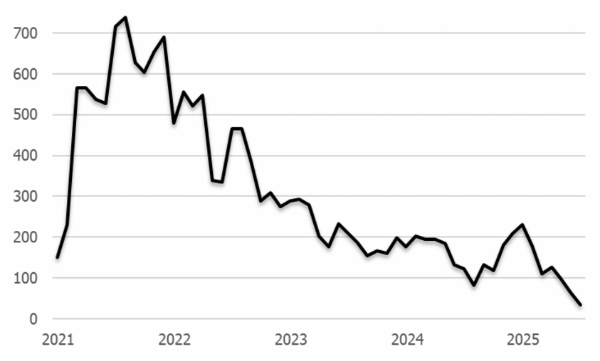 קריסת המו“מ לסיום הלחימה ושחרור החטופים בתחילת החודש הובילה למגמה של ירידות בבורסה ולהיחלשות השקל. עם זאת שני אלו חזרו למגמת עלייה מאמצע החודש, כאשר מדד ת“א 35 שובר עוד שיא כשעלה מעל 3,072 נק‘. הממשלה אישרה להגדיל את תקציב 2025 בכ-30.8 מיליארד ₪ לאור התארכות הלחימה והמערכה מול איראן. במידה והדבר יאושר גם בכנסת יעד הגירעון יגדל ל-5.2% (מ-4.9%). בינתיים הגירעון הממשלתי ירד ל-4.8% בעיקר בזכות גידול של 16.6% בהכנסות שהגיעו בעיקר ממיסים ישירים (מיסי הכנסה, רווחי הון ומיסי חברות). מדד המחירים לצרכן עלה ב-0.4% והוריד את האינפלציה לרמה של 3.1%, עדיין גבוהה יותר מטווח היעד של בנק ישראל (1%-3%). התוצר במשק התכווץ ברבעון השני של השנה בקצב של 3.5% (במונחים שנתיים), אך זה לאחר צמיחה גדולה מהמצופה ברבעון הראשון (3.1%) ובסך הכל מתאים לרבעון שבו עצימות הלחימה עלתה שוב. הדבר תואם גם את המדד המשולב של בנק ישראל שירד ביולי ב-0.64 נק‘ וב-2.92 נק‘ בחצי השנה האחרונה. עיקר הירידה עדיין משקפת את הפגיעה ביבוא, ביצוא וברכישות בכרטיסי אשראי במהלך מבצע “עם כלביא“, כאשר ההתאוששות בחודש יולי עוד לא ניכרת במדד.