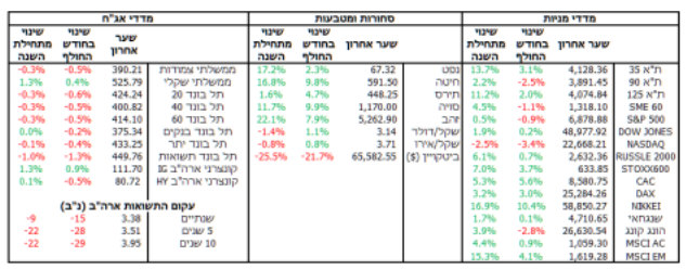 - מלכוד הריבית: למרות נתוני האינפלציה המצוינים, בנק ישראל הותיר את הריבית ב- 4% בשל אי- הוודאות הביטחונית והיחלשות השקל ב1.2%- מול הדולר.